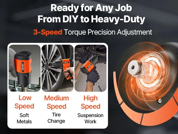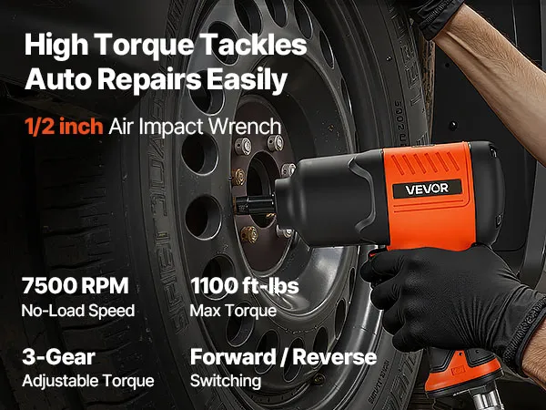 VEVOR Luchtslagsleutel, 12,7 mm aandrijving, tot 1490 Nm omgekeerd koppel, 7500 tpm, 4-snelheden aanpassing en pneumatisch luchtpistool voor autoreparaties en onderhoud