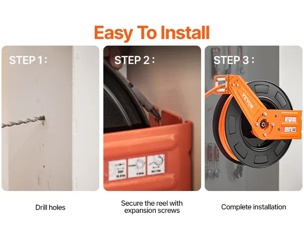 The retractable air hose reel is extremely easy to install. Without complicated tools and professional skills, you can install it on the ceiling or the wall easily and quickly.