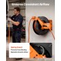 No More Tangled Hose: VEVOR retractable air hose reel includes 15m x 9.5mm hybrid air hose and a 1.52m lead-in hose to keep your workspace tidy and tangle-free. No more hoses dragging on the floor, reducing wear and tripping risks for more secure use