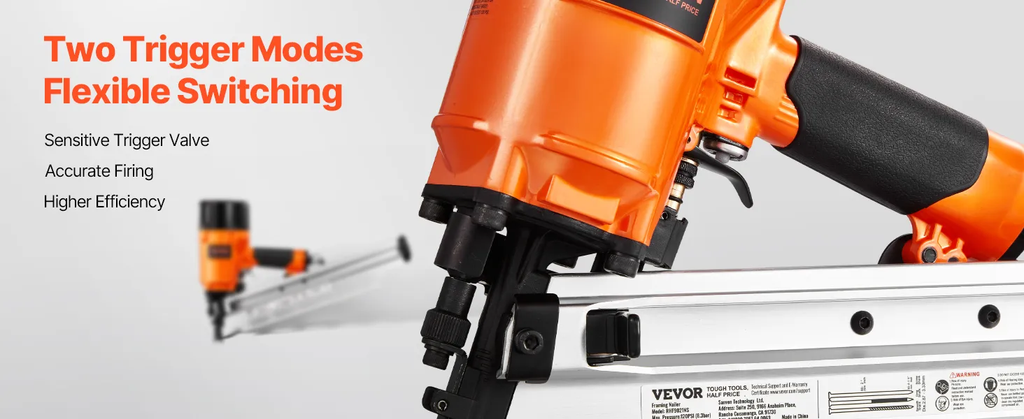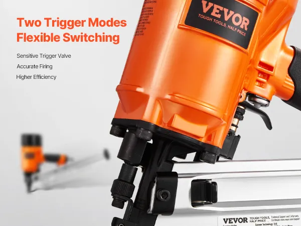 Het 21 graden pneumatische spijkerpistool heeft 2 trekkerstanden: sequentiële trekker en contacttrekker, zodat u flexibel kunt schakelen naar gelang uw behoeften.