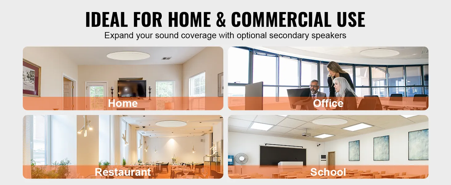 Transform any space with our multifunctional speakers. Seamlessly blending into your ceiling! Enhance your home with immersive audio for movies and music, create a welcoming and enjoyable atmosphere in your restaurant, or boost productivity with a comfortable soundscape in your office.