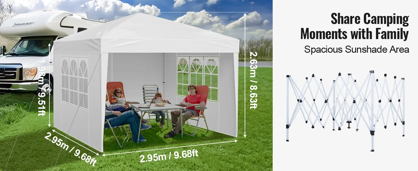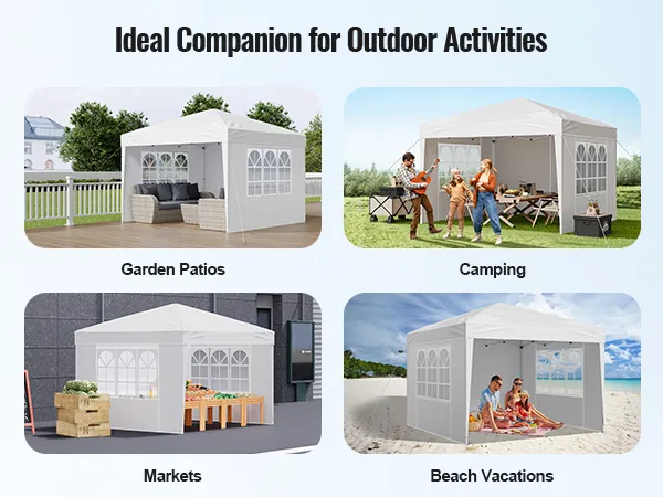 Ideal for garden parties, family camping, market stalls, or beach getaways, this pop up canopy adapts easily to various outdoor activities.