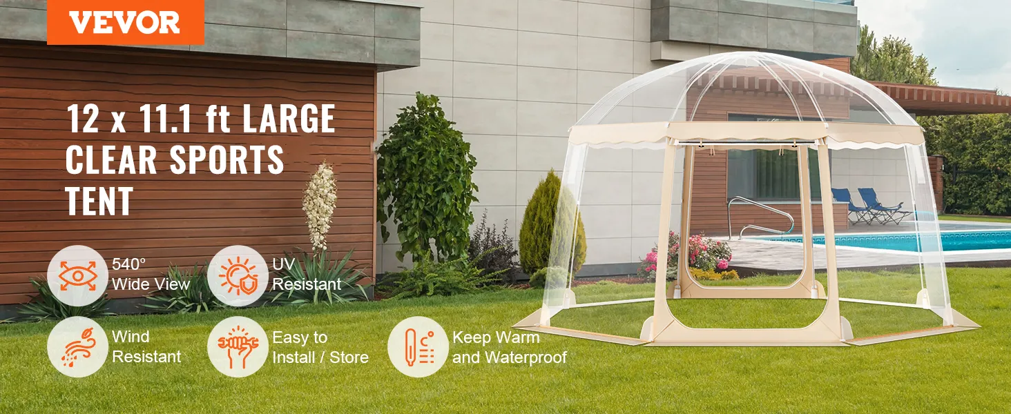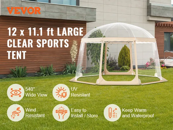 VEVOR Sporttent, 8-10 personen, gebruiksklare pop-uptent, weerbestendige capsule, buitenbubbeltent met helder zicht, luifel met airconditioning voor voetbal, American football, softbal en andere sportevenementen en parades