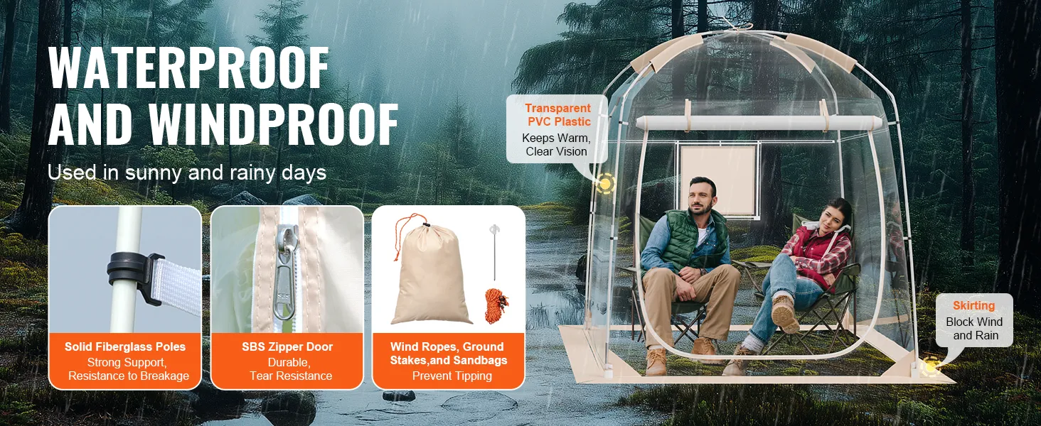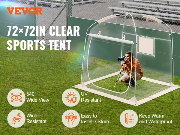 Deze sportregentent is gemaakt van scheurbestendig, transparant PVC en houdt je warm en droog. Dankzij het waterdichte ontwerp en het stevige frame is hij bestand tegen de wind, zodat je onbezorgd van je tijd buitenshuis kunt genieten.