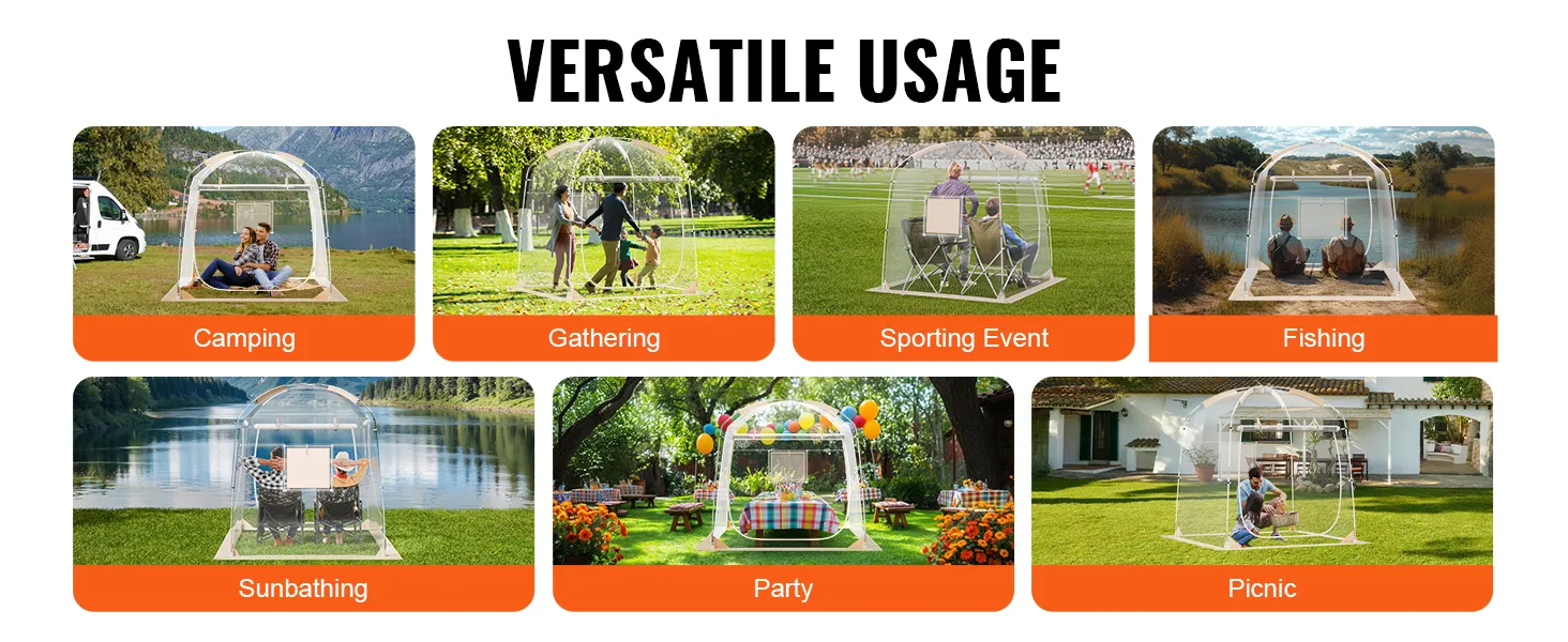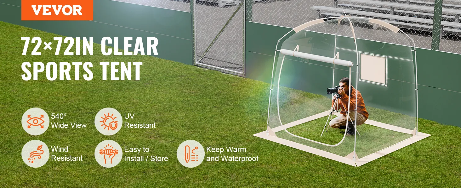 VEVOR Sporttent, weerbestendige instanttent voor 2-4 personen, buitentent met bubbels en helder zicht, klimaatgestuurde luifel voor voetbal, American football, softbal en andere sportevenementen, parades, vissen