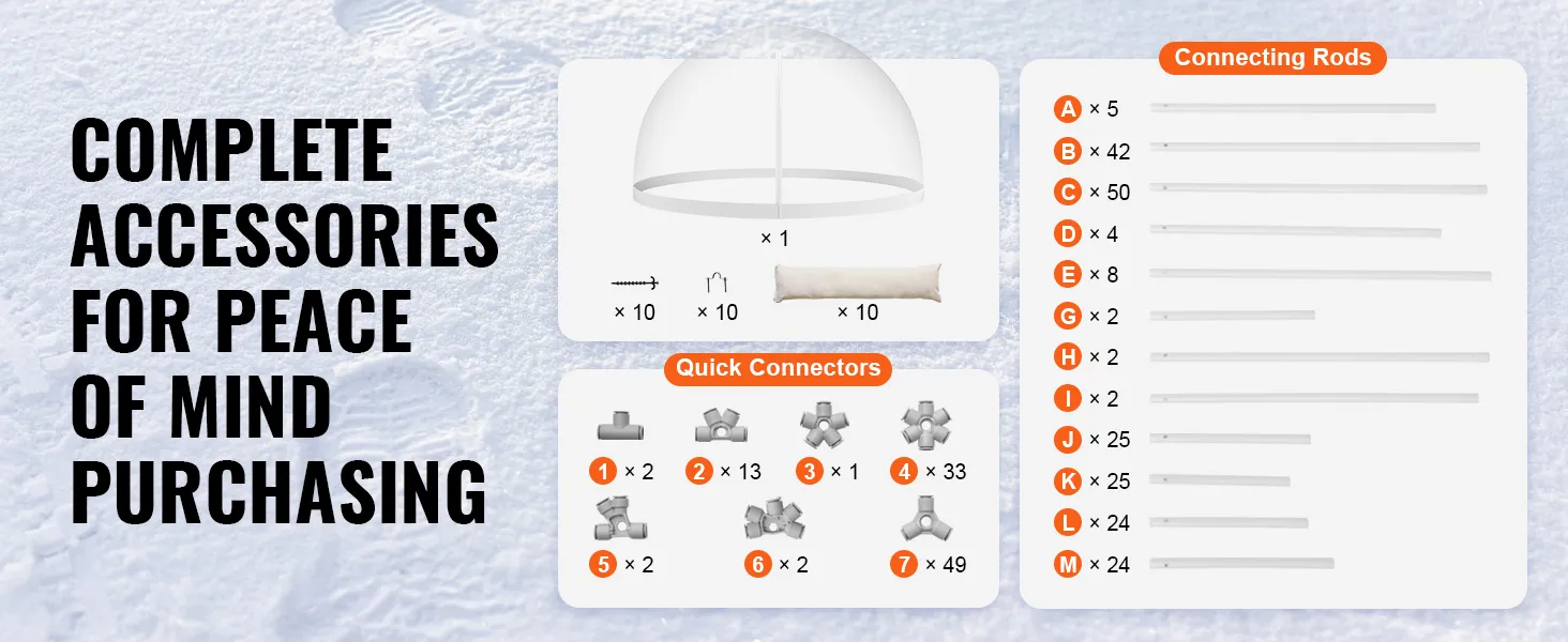 A Trustworthy Choice: Our Bubble Tent comes with detailed installation instructions and videos. The package includes the transparent canopy, connectors, quick-connect parts, sandbags, stakes, and a carry bag. We recommend assembling the dome tent with three people; it requires some patience but is fun and challenging. The PBT quick-connect parts significantly speed up the setup process.