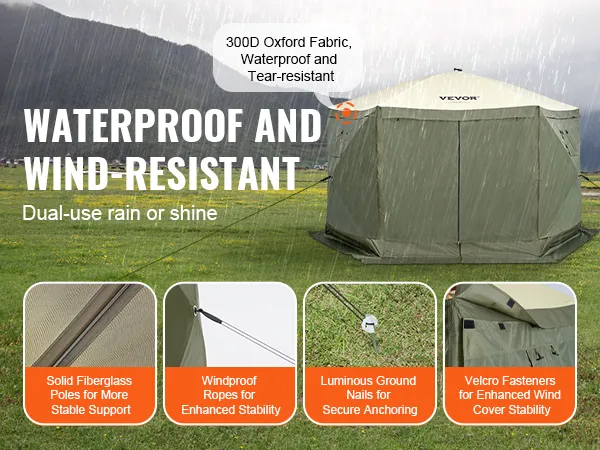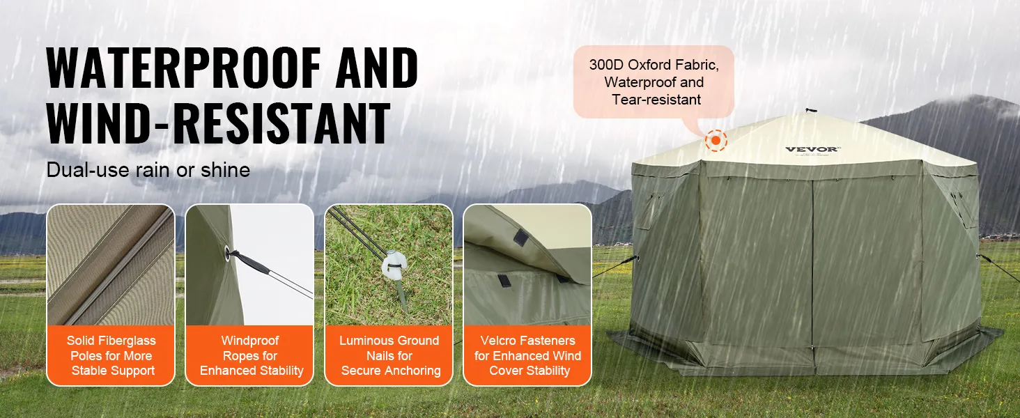 The pop up camping gazebo made of upgraded thickened waterproof materials prevent leakage and ensure stability outdoors.