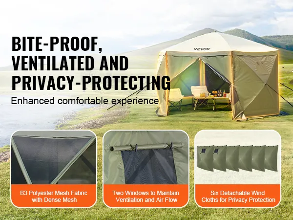 6 Windproof Cloths: The camping gazebo comes with 6 detachable and installable windproof cloths, providing you with a secluded private space outdoors. Two of the windproof cloths have windows to ensure air circulation and provide a comfortable user experience.