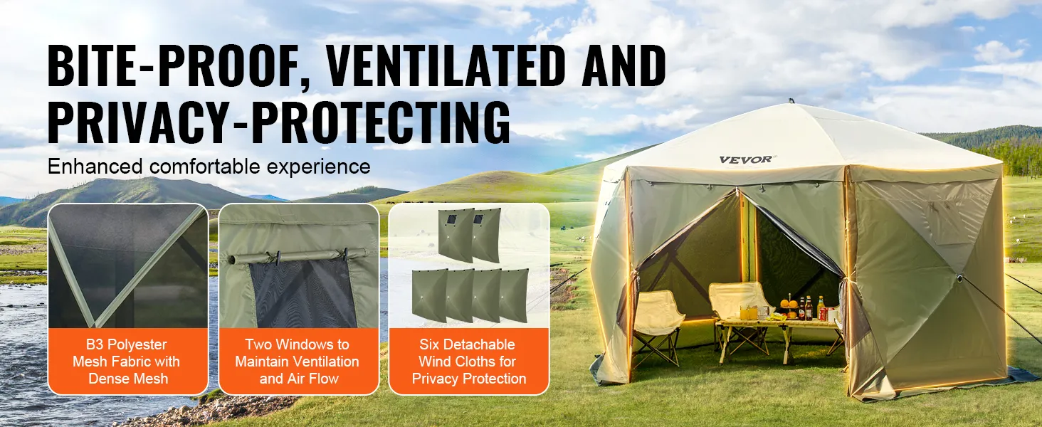 VEVOR 12x12FT Camping Gazebo Screen Tent-A Rest Space for Outdoor Activities!