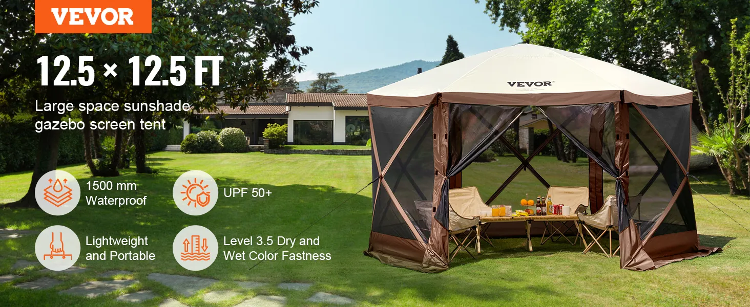 VEVOR 12.5x12.5FT Camping Gazebo Screen Tent-A Rest Space for Outdoor Activity!