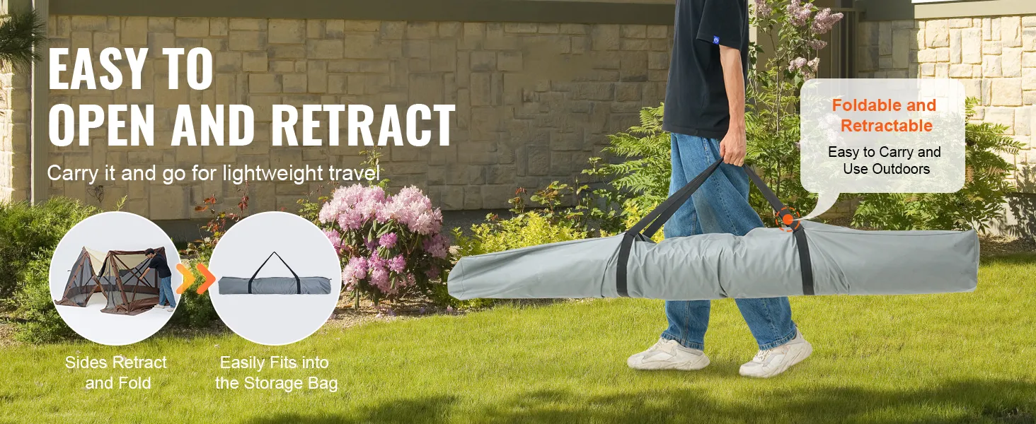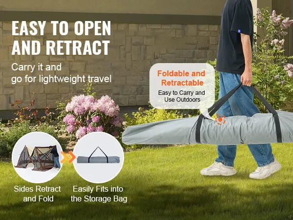 Easy to Assemble: Our pop up camping gazebo adopts a pop-up design, requiring no complex tools, it can be stretched and opened within minutes, easy and effortless to assemble. It comes with an additional carrying bag for foldable storage, convenient for outdoor transportation and carrying.