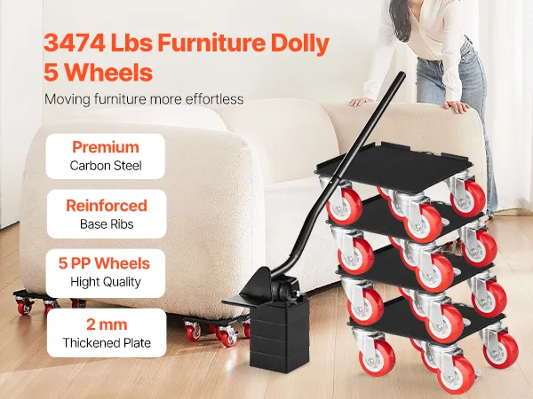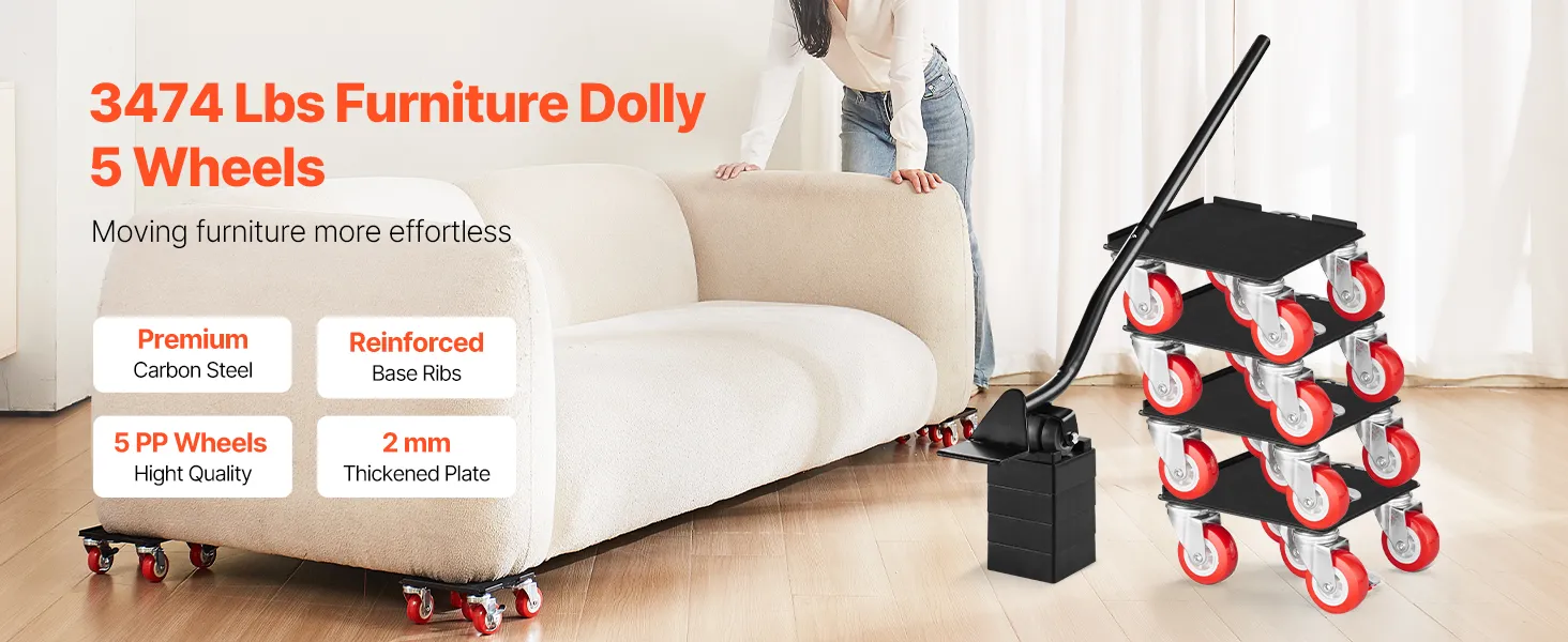 Eenvoudig en gemakkelijk te gebruiken: Er wordt een koevoet meegeleverd om het verplaatsen gemakkelijker te maken en u kunt meubels eenvoudig optillen of verplaatsen. Plaats de trolley eenvoudig onder het artikel nadat u het hebt opgetild, herhaal dit voor alle hoeken en duw het vervolgens gelijkmatig om het moeiteloos te vervoeren