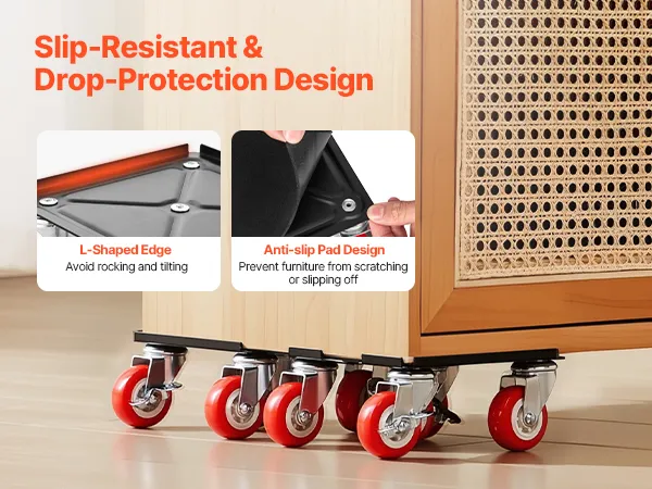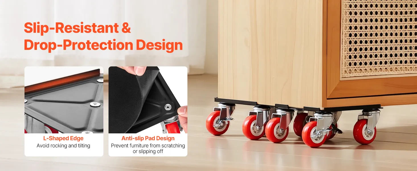 Protecting Furniture and Security: Features like non-slip pads and L-shaped edges provide comprehensive protection for your furniture. The furniture movers with wheels ensure a smooth and secure moving process without the risk of slipping or damage, giving users peace of mind.
