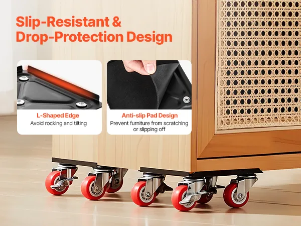 Protecting Furniture and Security: Features like non-slip pads and L-shaped edges provide comprehensive protection for your furniture. The furniture movers with wheels ensure a smooth and secure moving process without the risk of slipping or damage, giving users peace of mind.