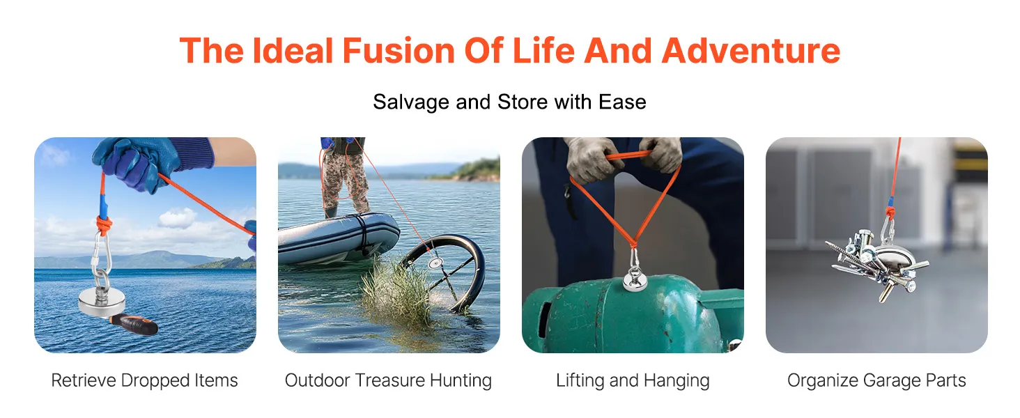 Deze supersterke magneet is niet alleen ideaal voor onderwaterredding en schatzoeken in de open lucht, maar ook voor het ophangen van voorwerpen, het opbergen van garageonderdelen en meer.