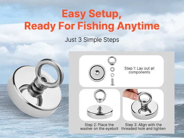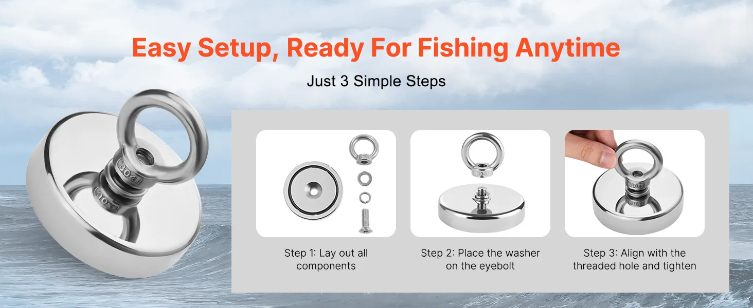 Deze krachtige magneet is gemaakt van eenvoudige componenten en kan in slechts 3 stappen worden gemonteerd. Of het nu gaat om dagelijkse buitenavonturen of lange reizen, schatten zoeken en terugvinden wordt kinderspel.