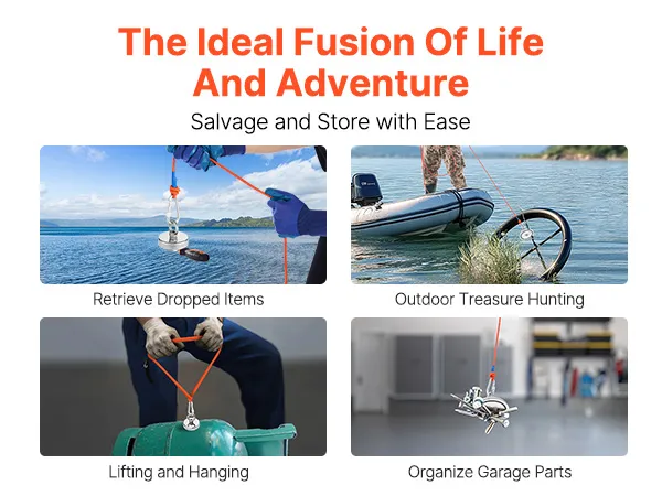 Stabiel en veilig: de krachtige magneet heeft een veilig roterend ontwerp en een stevige draadstructuur, zodat er geen risico bestaat op onbedoeld loslaten bij het ophalen. Het biedt u een efficiënte, betrouwbare en stabiele herstelervaring, zodat u veilig meer schatten kunt terugvinden.