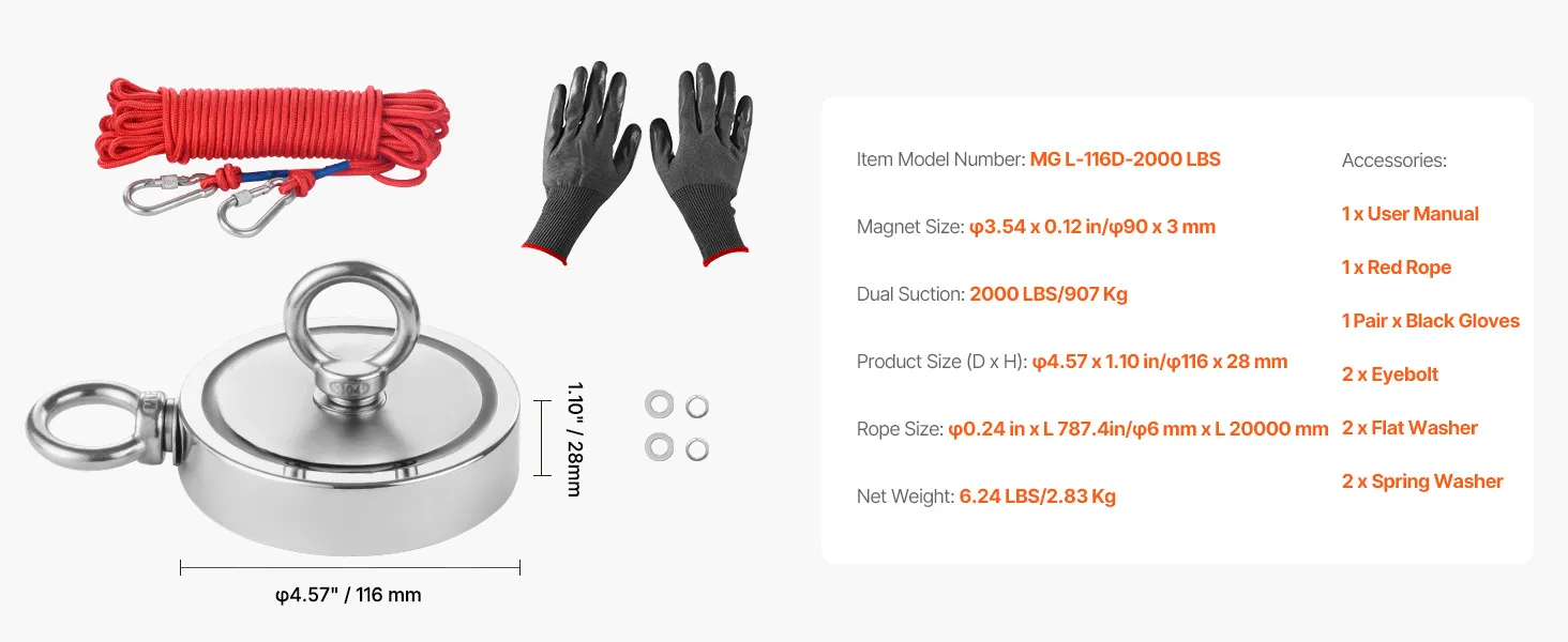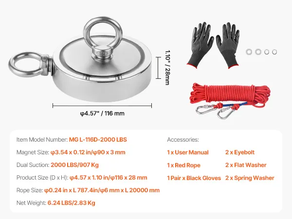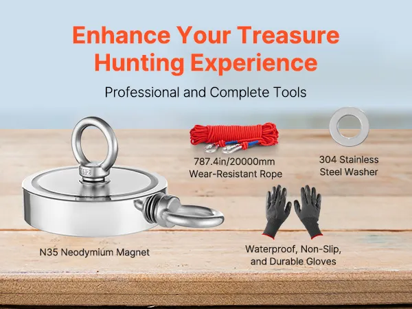 Alles-in-één kit: Ben je de onvolledige visuitrusting beu? Kies voor onze magneetvisset, die een 20 meter lang sterk touw en waterdichte antisliphandschoenen bevat - u hoeft niets extra's te kopen. U kunt onmiddellijk beginnen met professioneel schatzoeken.
