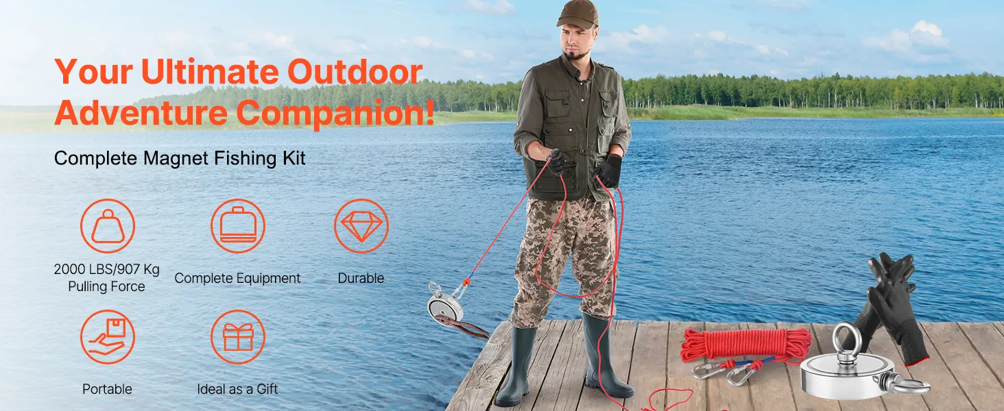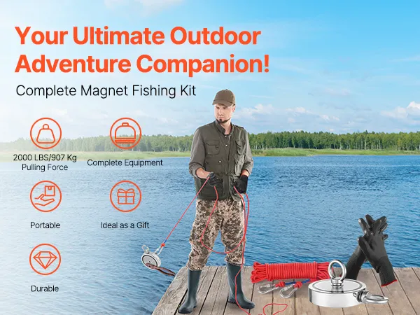 Deze magnetische visset bevat hoogwaardige N35 neodymiummagneten met een trekkracht tot 2000 lbs. Het wordt geleverd met een complete set accessoires. Dankzij de dubbele antiroestlaag en het compacte ontwerp is hij gemakkelijk te vervoeren.