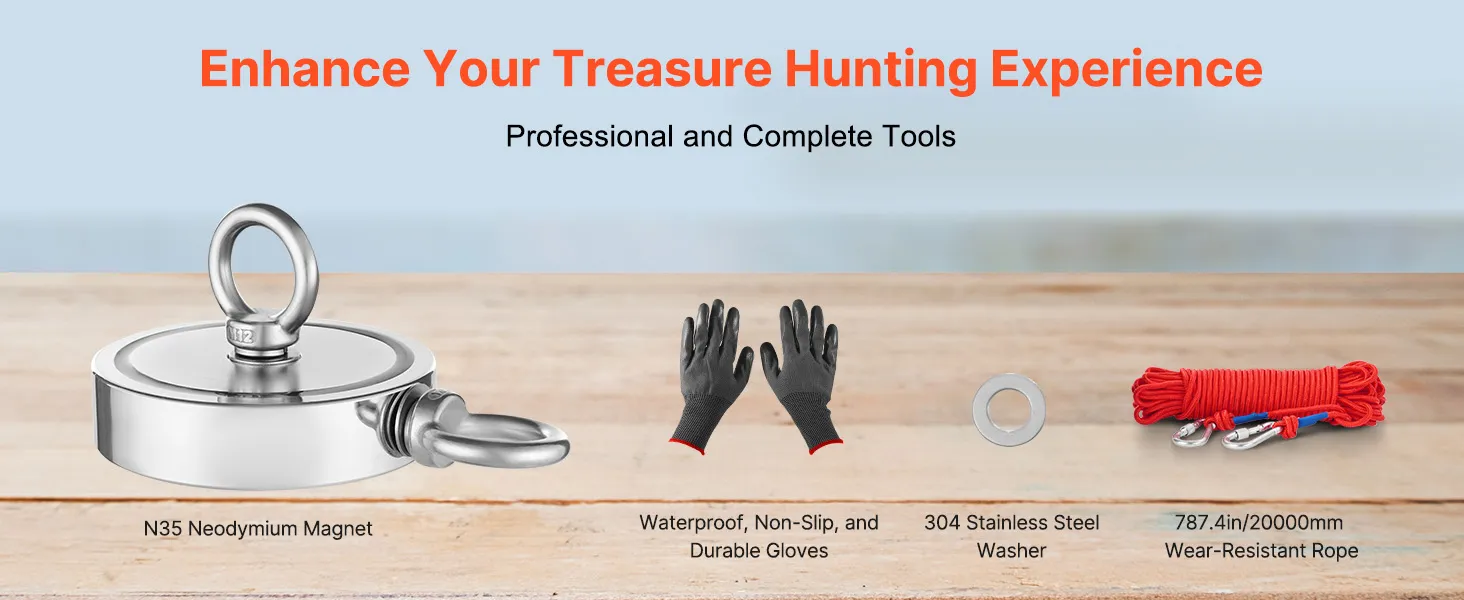 Deze magneetvisset bevat zorgvuldig geselecteerde accessoires die niet alleen krachtig maar ook duurzaam zijn, waardoor je een complete gereedschapsset hebt voor al je behoeften op het gebied van schatzoeken.