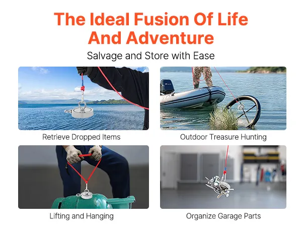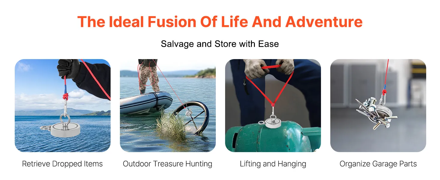 Veelzijdige toepassing: deze magnetische visset is ideaal voor schatzoekers in de open lucht of professionele bergers in rivieren, meren, vijvers, enz. Hij kan ook worden gebruikt om metalen voorwerpen in magazijnen of garages vast te zetten of op te slaan.