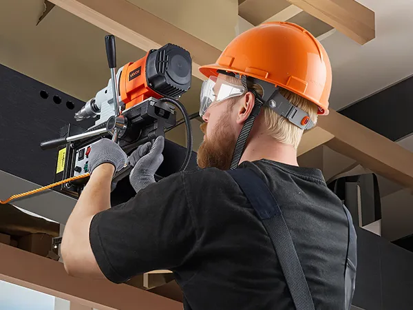 Sterke magneetkracht: De magneetboor heeft een dikke, zeer zuivere ijzeren basis voor een magneetkracht tot wel 13.000 N. Hij blijft stevig op zijn plaats, zelfs op verticale of hellende metalen oppervlakken, en zorgt voor stabiel en veilig boren.