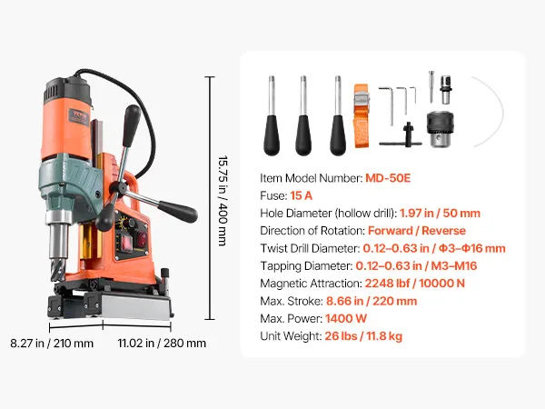 Dubbele bescherming: Geïntegreerde koeling en smering houden de magnetische boren en oppervlakken op optimale temperaturen voor langdurig gebruik. Een overbelastingsbeveiliging van 15 ampère voorkomt motorschade door verkeerd gebruik, verlengt de levensduur en zorgt voor een veilige, hoogwaardige werking.