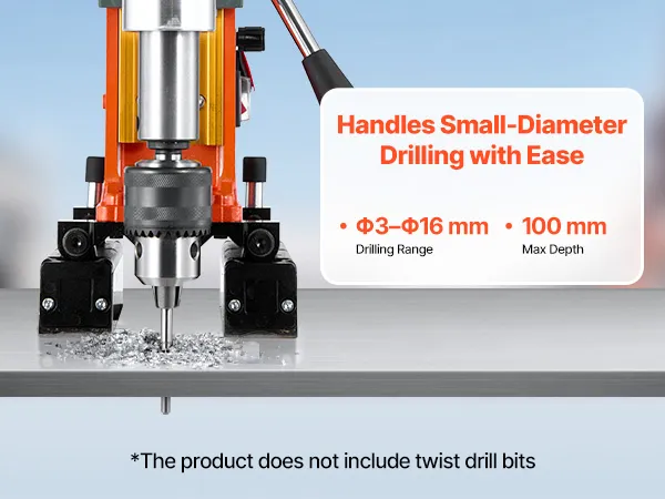 Meerdere functies: Deze magneetboormachine combineert gaten boren, spiraalboren en tappen in één gereedschap. Of u nu gaten in dikke platen boort, schroeven indraait of in buizen boort, hij voert taken uit met professionele precisie.