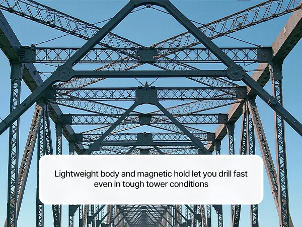 Veelzijdige toepassing: ontworpen voor gebruik in de bouw, scheepsbouw, elektriciteitscentraletorens, spoorweginfrastructuur en industriële renovatie. Deze magneetboormachine biedt betrouwbare prestaties in uiteenlopende veeleisende omgevingen.