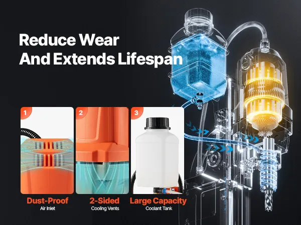 Bij zware of lastige werkzaamheden verlaagt de magneetboormachine automatisch het vermogen of neemt hij pauzes om de levensduur te verlengen en een veilige werking te garanderen.