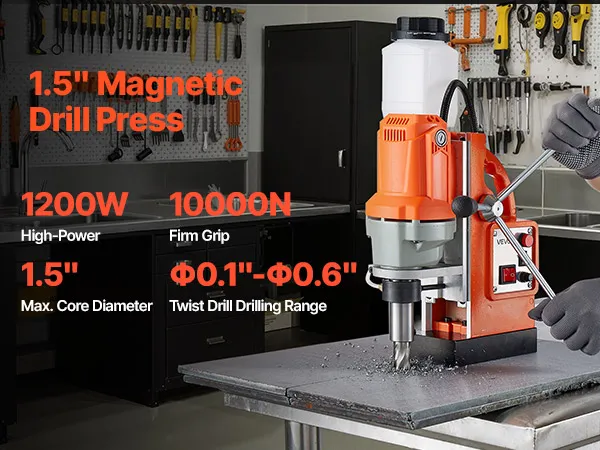 VEVOR Magnetische Boormachine 1200 W 38 mm Boordiameter, 10000 N Power Mag Boormachine, 900 rpm Snelheid met Weldon As & Efficiënte Koeling, voor Metaaloppervlakken Industrie DIY