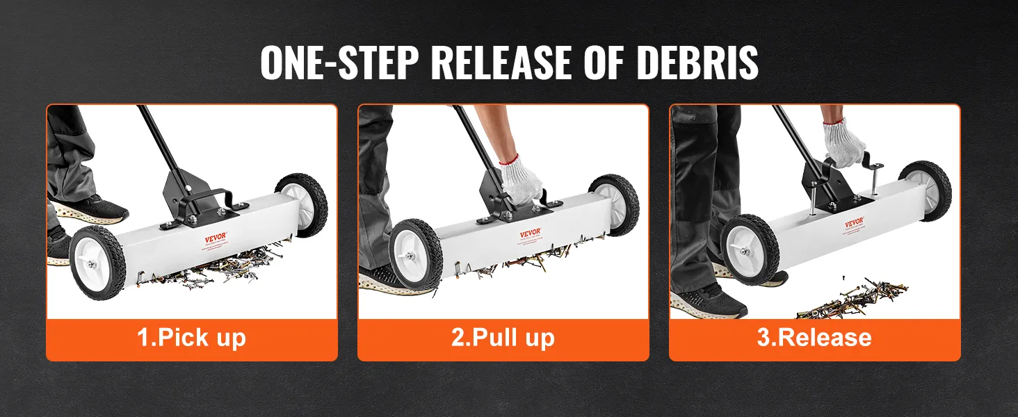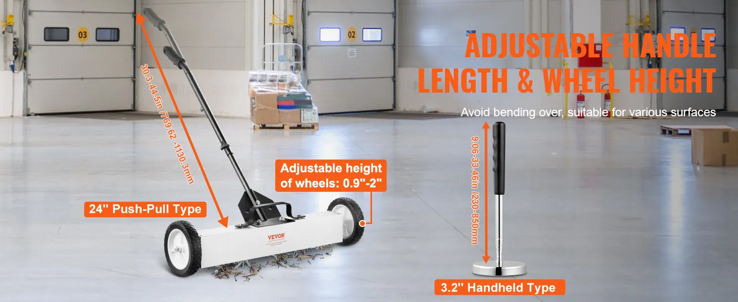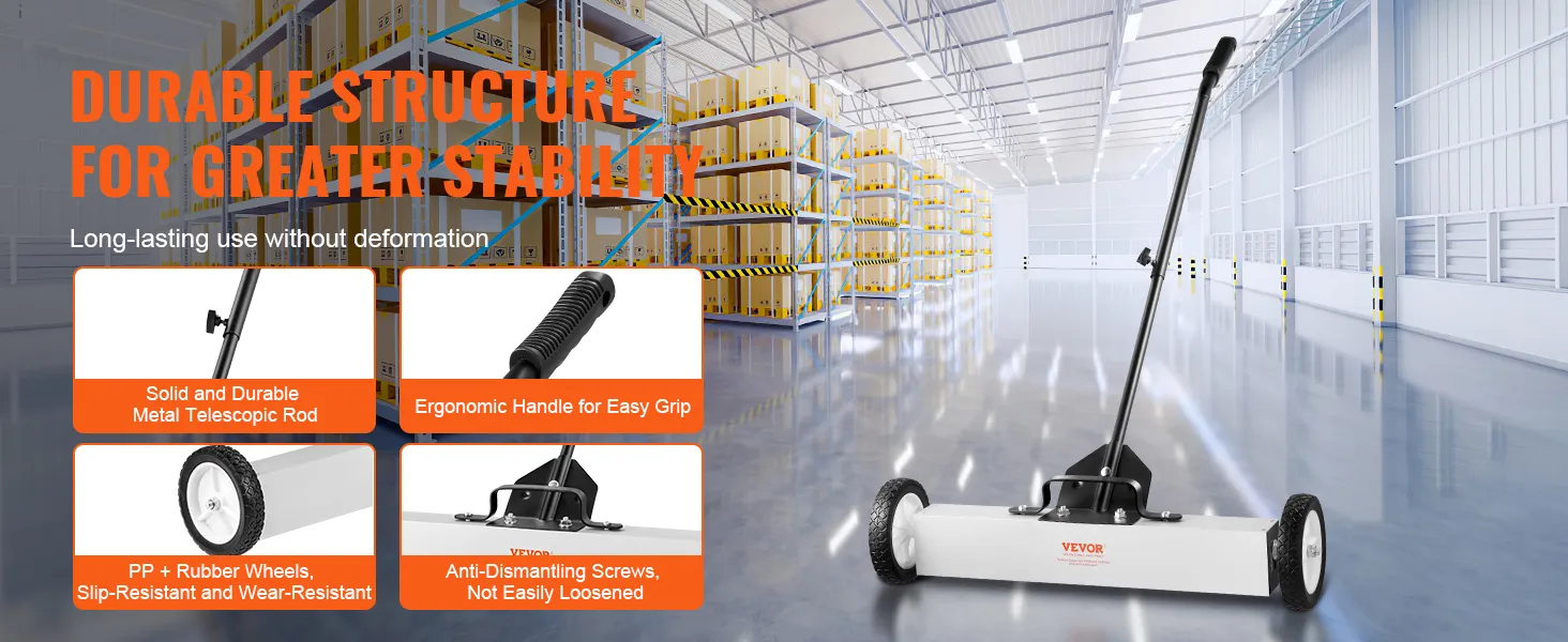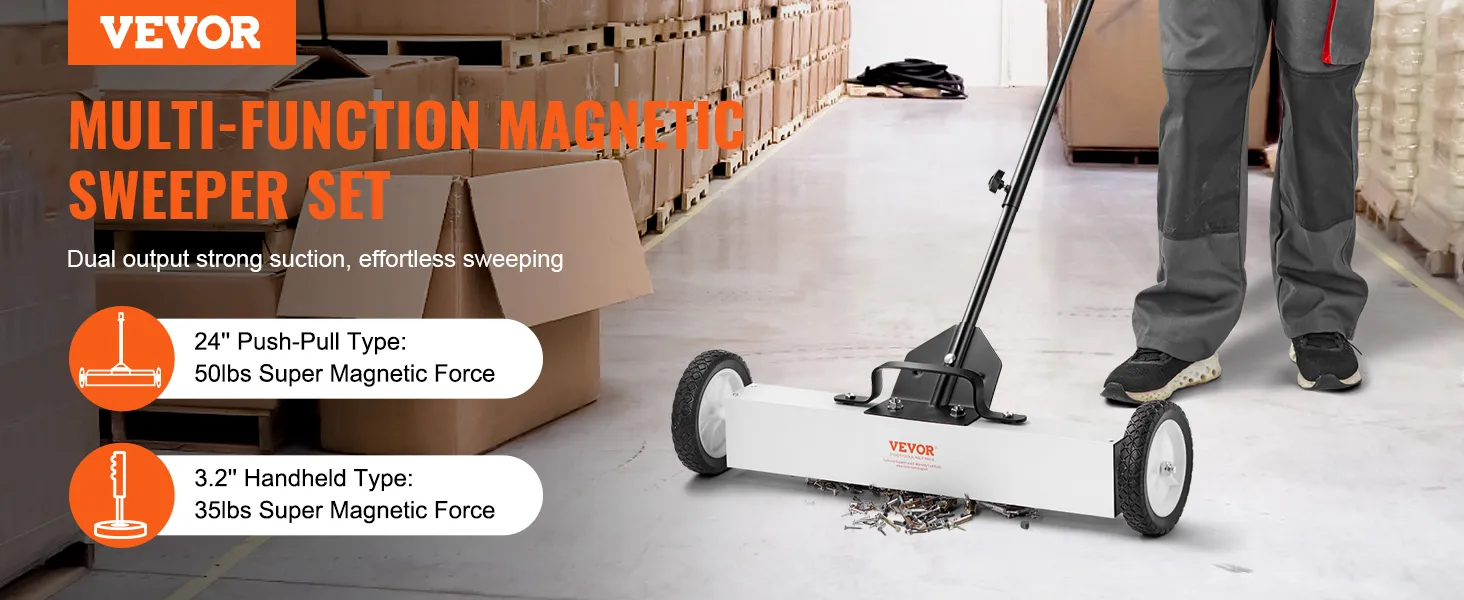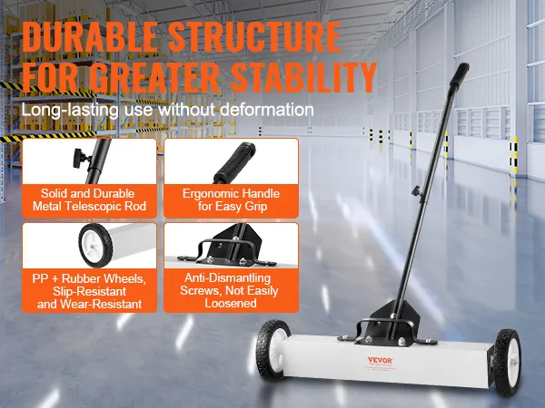 Deze magnetische veger is gemaakt om snel en gemakkelijk schoon te maken. Het krachtige magnetisme zorgt ervoor dat zelfs kleine stukjes metaal effectief worden opgepakt. Geschikt voor gebruik in winkels, garages en bouwplaatsen. De VEVOR 24-inch magnetische veger houdt uw werkgebied veilig en schoon.