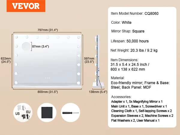 5x vergrotende spiegel: φ3,43 inch afneembare 5x vergrotende spiegel met 2 zuignappen kan op elk moment aan de spiegel worden bevestigd. 5x vergroting van uw mascara- en lippenstiftmake-updetails. Geen ingepakte spiegel voor een breder en schoner zicht.