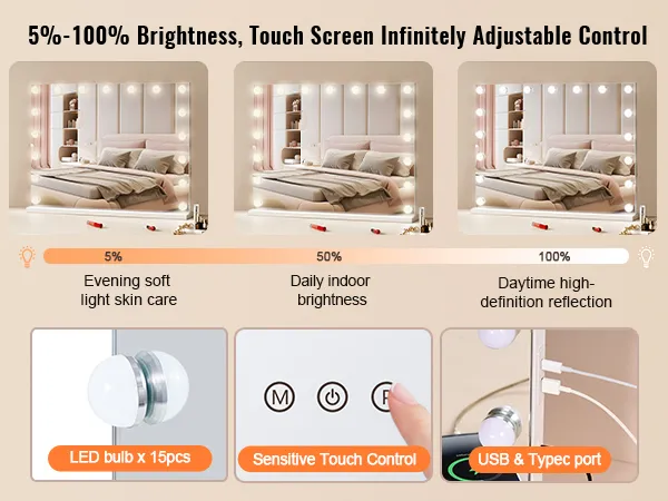 Raak eenvoudig de spiegel aan om de helderheid van de spiegel aan te passen. Meerdere LED-lampen verlichten uw schoonheid gelijkmatig, 5% - 100% helderheid met uw nauwkeurige aanpassing.