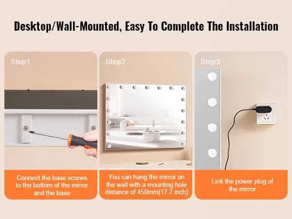 Wandmontage en tafelmontage: Wij ondersteunen twee soorten montagemethoden, afhankelijk van uw behoeften: montage op het aanrecht van de make-upspiegel in de slaapkamer of aan de muur van de douchecabine.