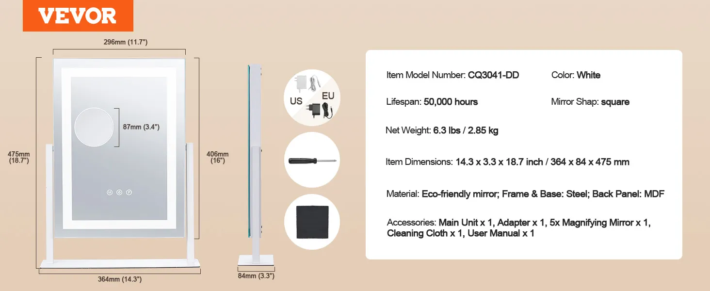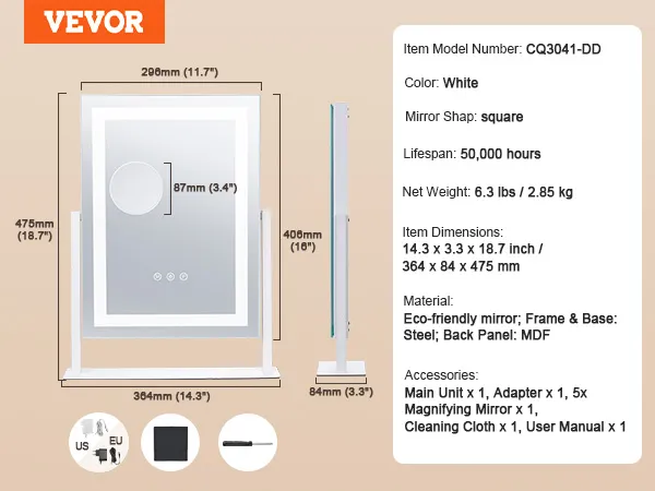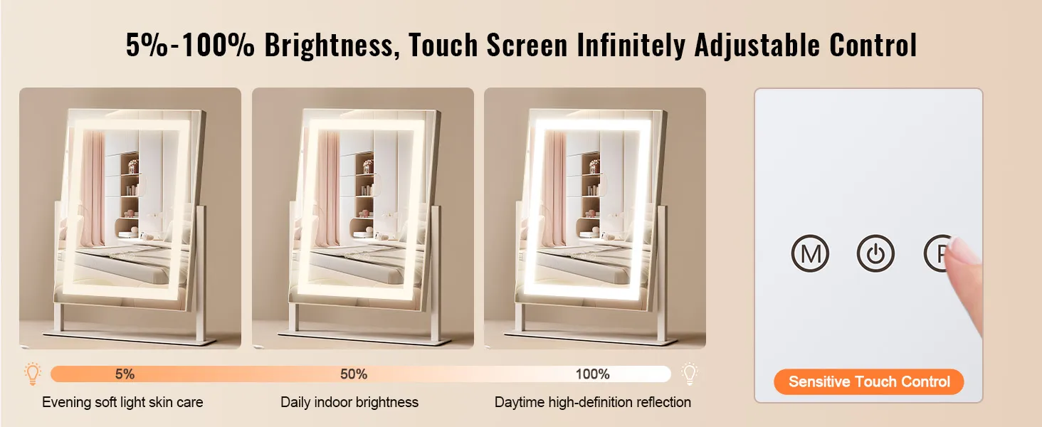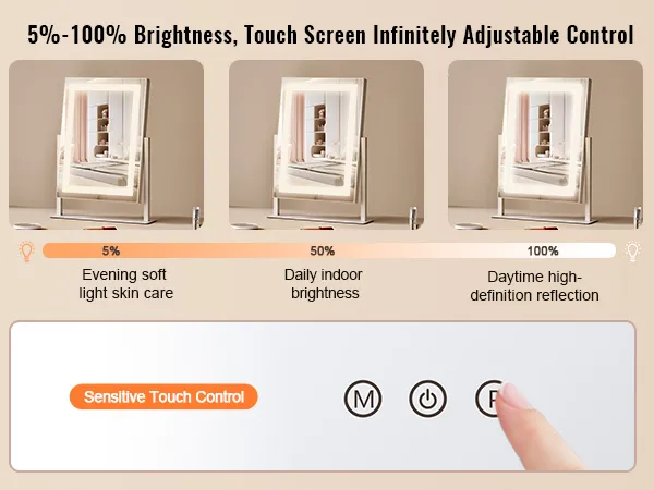 Uitgerust met een 5x vergrotende lens en een touchpad met instelbare helderheid, kunt u de juiste kleurtemperatuur kiezen, zodat u elk detail gemakkelijk kunt vastleggen en een prachtige make-uplook kunt creëren.