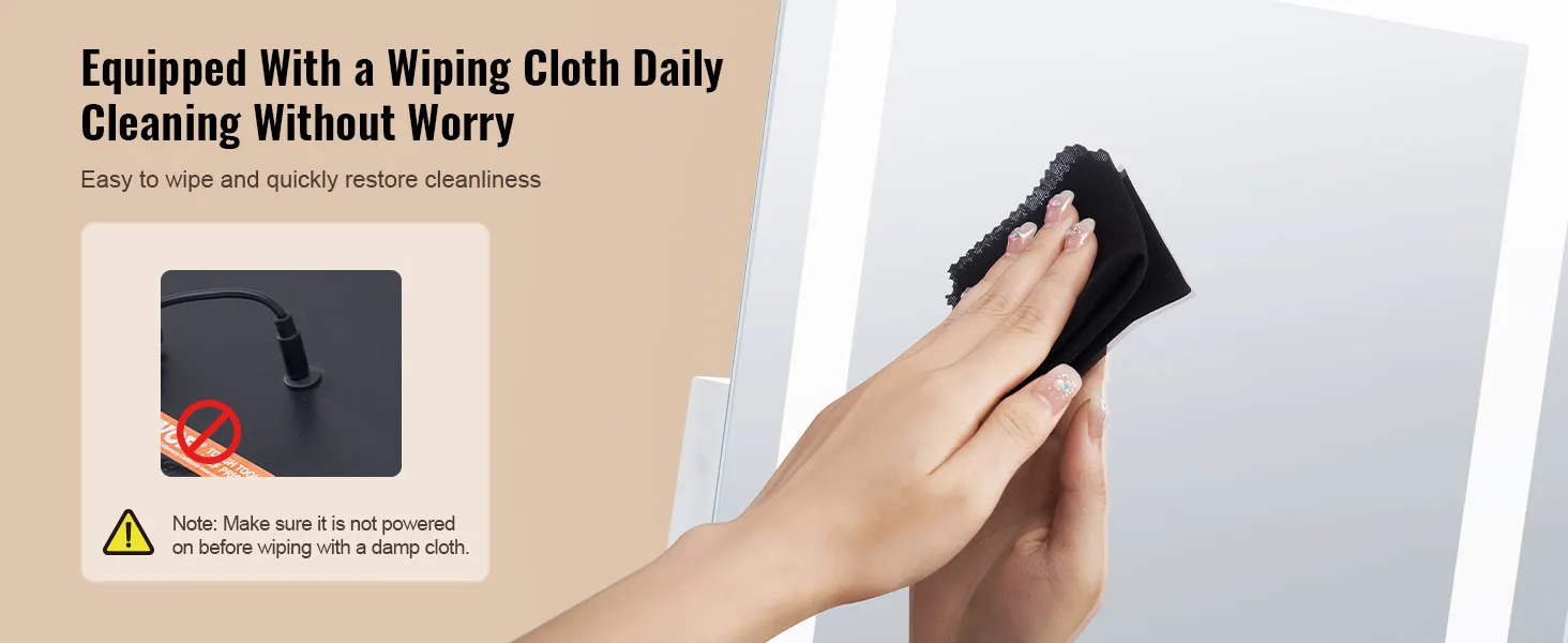 Wij zijn voorzien van handdoeken. Voor de dagelijkse verzorging hoeft u alleen maar de spiegel af te vegen om hem als nieuw schoon te houden. Dit product ondersteunt geen opladen en moet zijn aangesloten om te gebruiken.