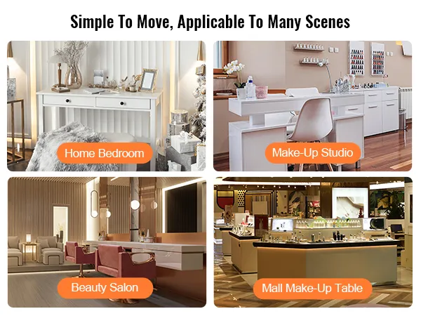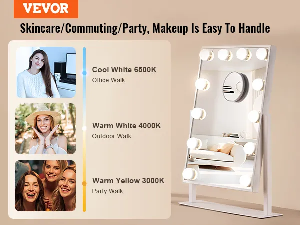Driekleurige lichtbron: Uitgerust met koud licht (6500K), warm wit licht (4000K) en warm licht (3000K) driekleurig licht, met traploos instelbare helderheid via het touchscreen, dat het echte omgevingslicht in verschillende scènes simuleert, Of het nu gaat om een woon-werkverkeer of een avondfeest, make-up kan het u gemakkelijker maken.