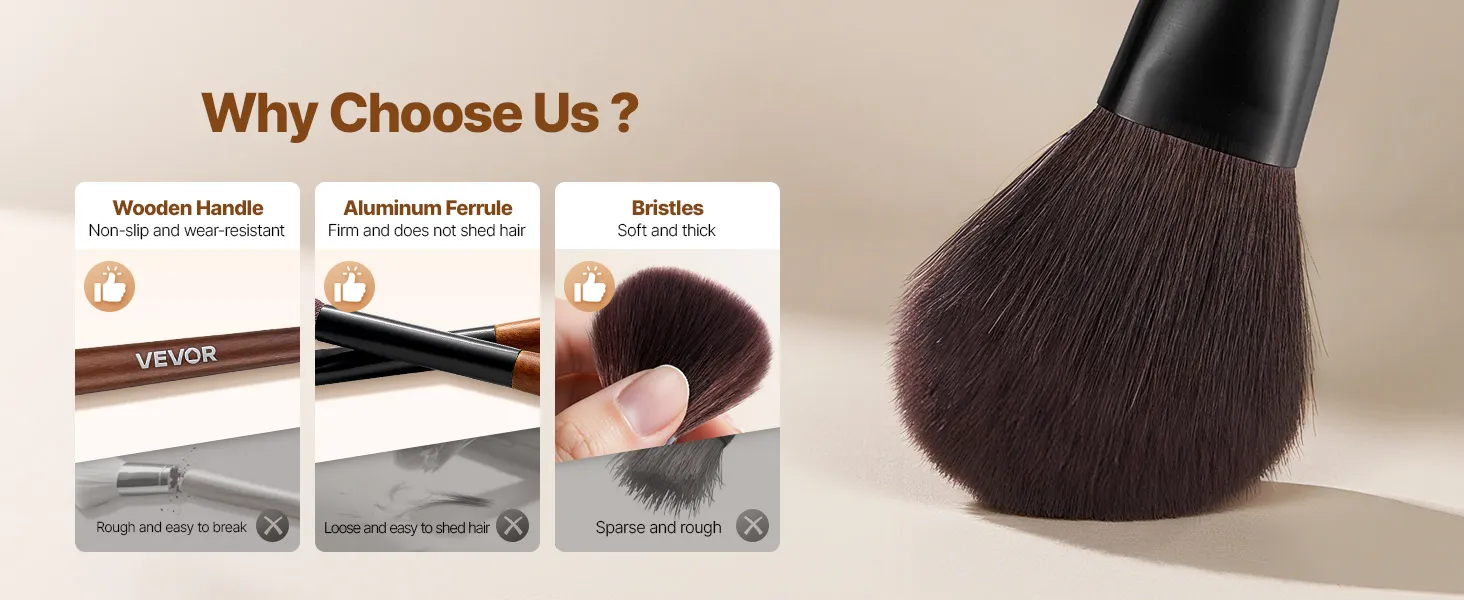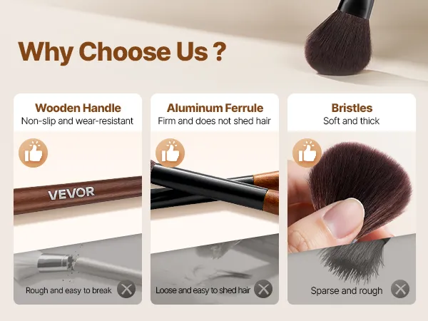 Ontworpen voor kwaliteit en schoonheid! Met een stevige, antislip houten handgreep voor een comfortabele grip, een duurzame aluminium huls die de borstelharen stevig vasthoudt zonder te pluizen, en zachte, dichte borstelharen voor een soepele, gelijkmatige applicatie.