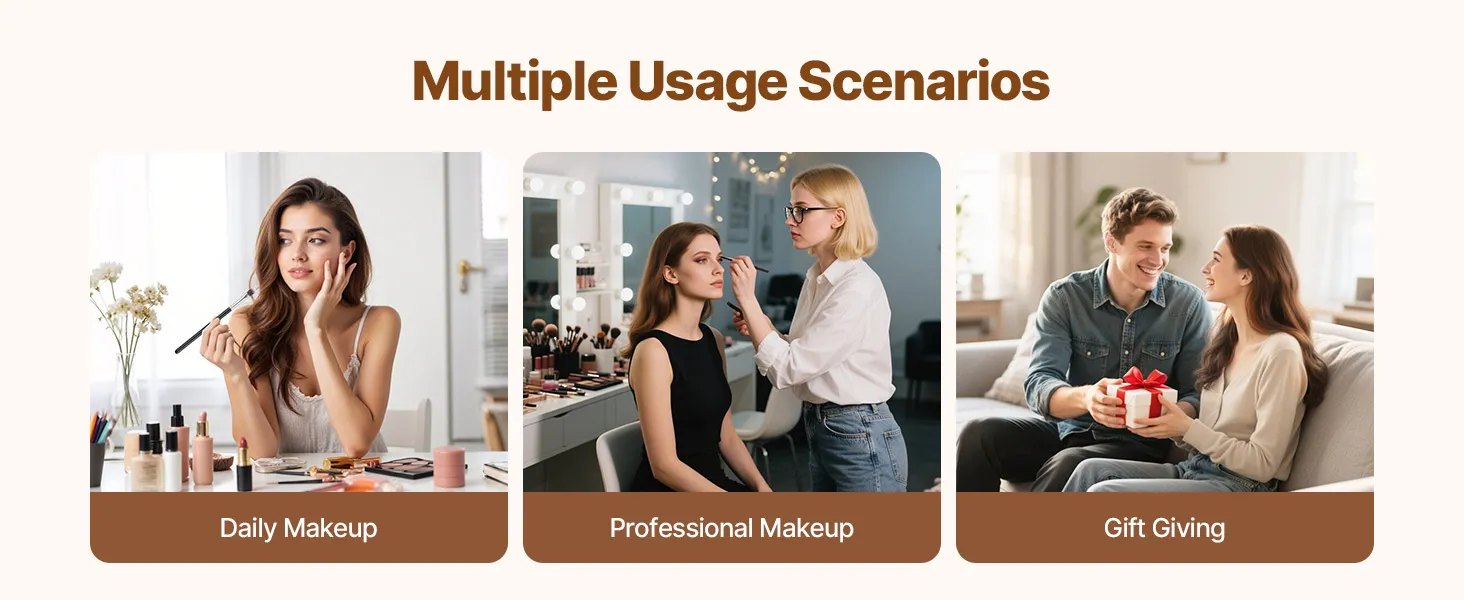 De 9-delige professionele make-upkwastenset combineert ultrazachte haren, ergonomische houten handvatten en aluminium ringen voor een professionele make-upervaring. Van het aanbrengen tot het blenden van make-up, de kwasten zorgen voor een soepele en precieze applicatie, voor een moeiteloze, natuurlijke en onberispelijke schoonheid.