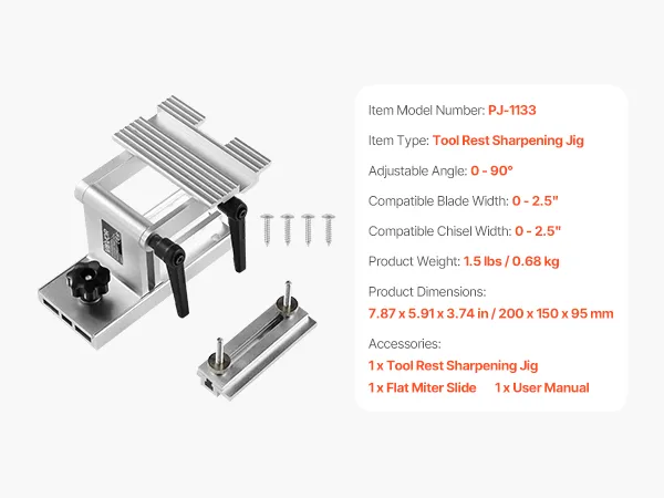 VEVOR Beitelslijper, gereedschapshouder voor slijpmachines met een diameter van 15/20 cm, met vlakke verstekgeleider voor bladen en beitels van 0-6,35 cm breed