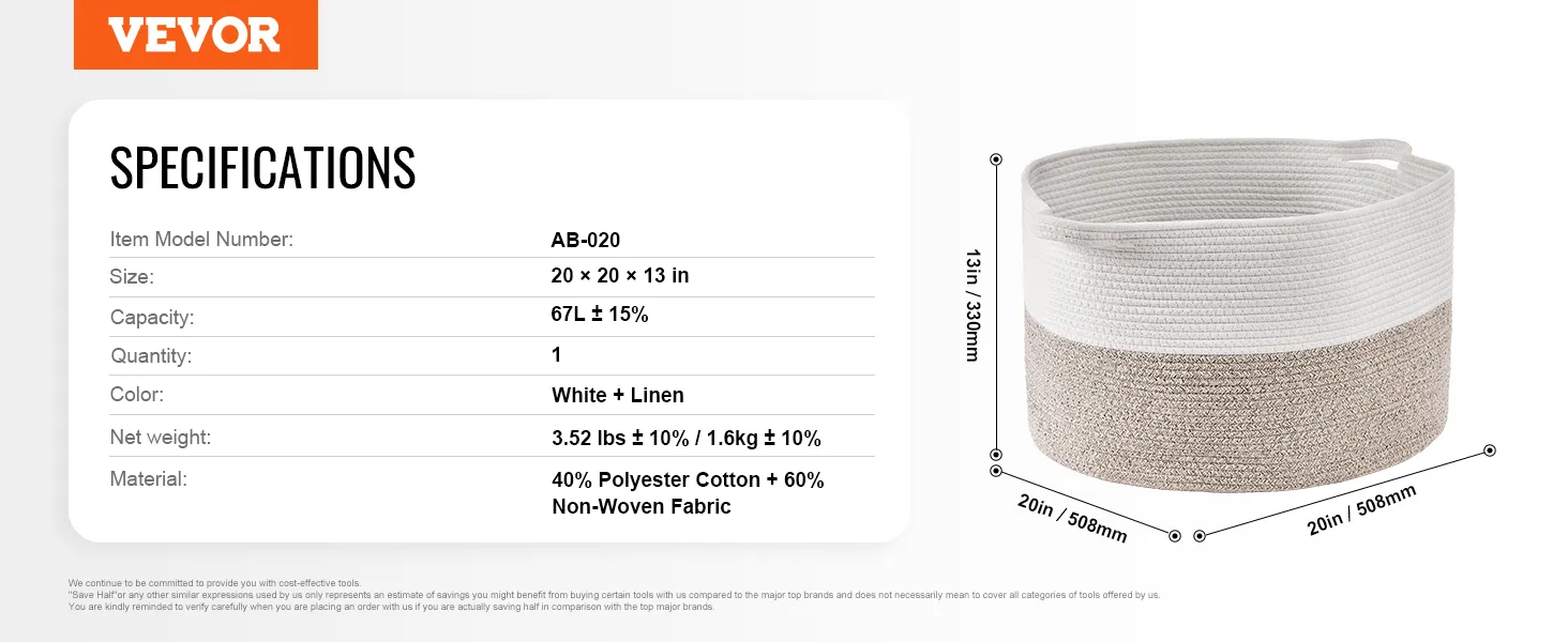 Natural Weave: Onze geweven manden zijn handgemaakt van hoogwaardig polyester-katoen en non-woven stof en zijn gemaakt van natuurlijke materialen voor een comfortabele woonervaring. De zachte, huidvriendelijke textuur is strak geweven, zodat de mand sterk blijft en niet uitzakt als hij gevuld is.