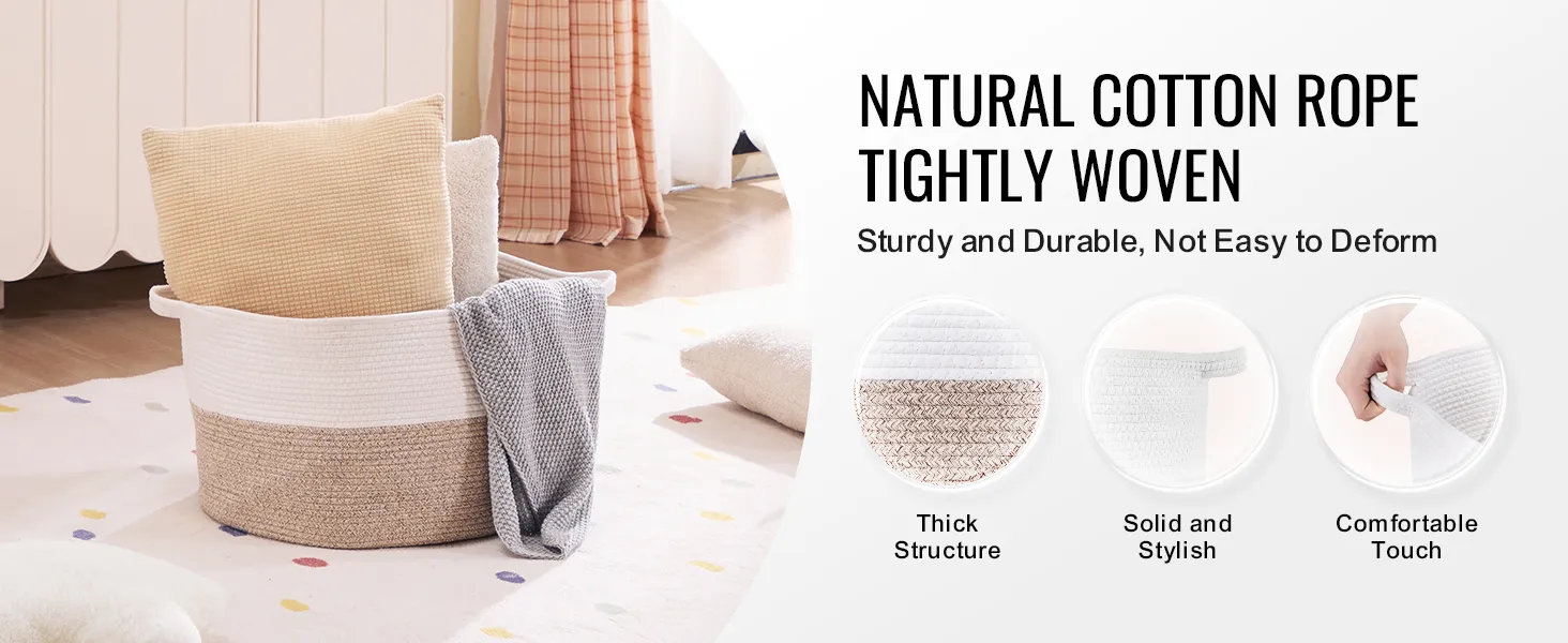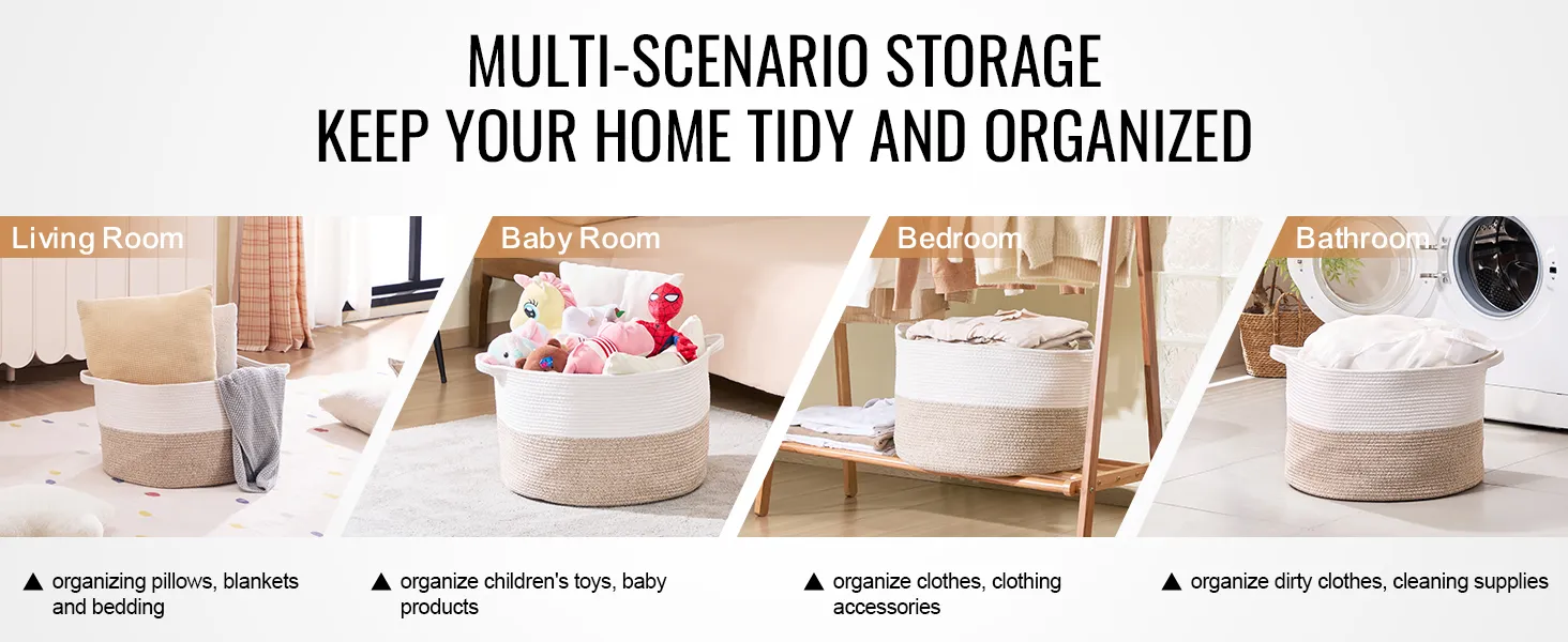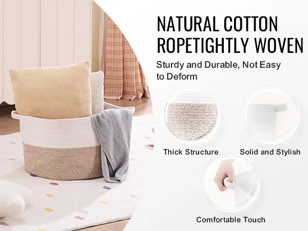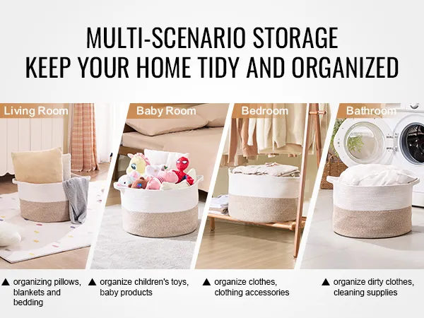 MULTIFUNCTIONEEL - De grote, duurzame katoenen opbergmanden zijn ideaal voor verschillende opbergdoeleinden en zijn geschikt voor het organiseren van kleding, babyartikelen, speelgoed, kussens, dekens en andere huishoudelijke artikelen. Dit maakt ze de beste keuze voor een opgeruimd en georganiseerd huis.
