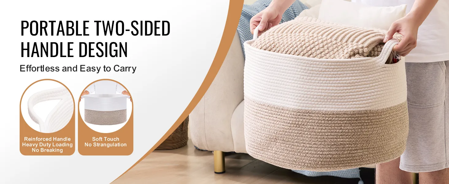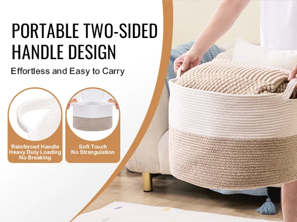 Draagbare handgrepen: De dekenmanden zijn voorzien van handgrepen aan beide zijden en zijn gemakkelijk op te tillen zonder te hoeven bukken. Het zachte en comfortabele materiaal zorgt ervoor dat de handvatten niet in je handen snijden. Met 3 lagen sterke, versterkte stof zijn de handgrepen bestand tegen zware lasten of trekken zonder te scheuren, waardoor een lange levensduur wordt gegarandeerd.