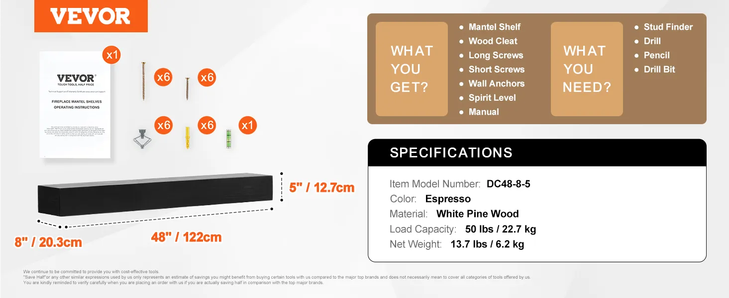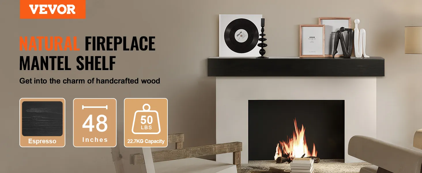 Easy to Install: For secure and straightforward installation, please ensure the wood mantel is mounted on flat walls. All necessary mounting hardware is included, making the assembly process quick and hassle-free.