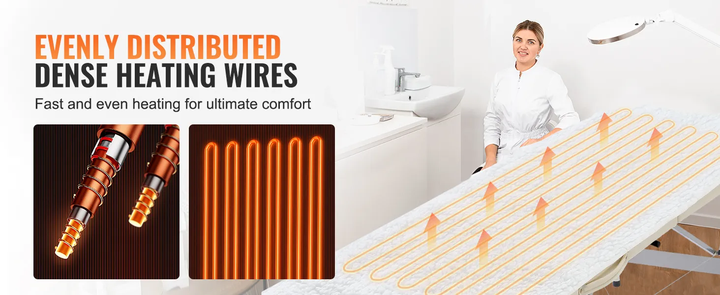 • Enhanced Safety: Our professional spa massage bed warmer is equipped with overheat protection and dual spiral heating wire design, ensuring uniform heat distribution and preventing localized overheating. The automatic power cut-off feature is activated when overheated, providing a safer and more reliable experience.