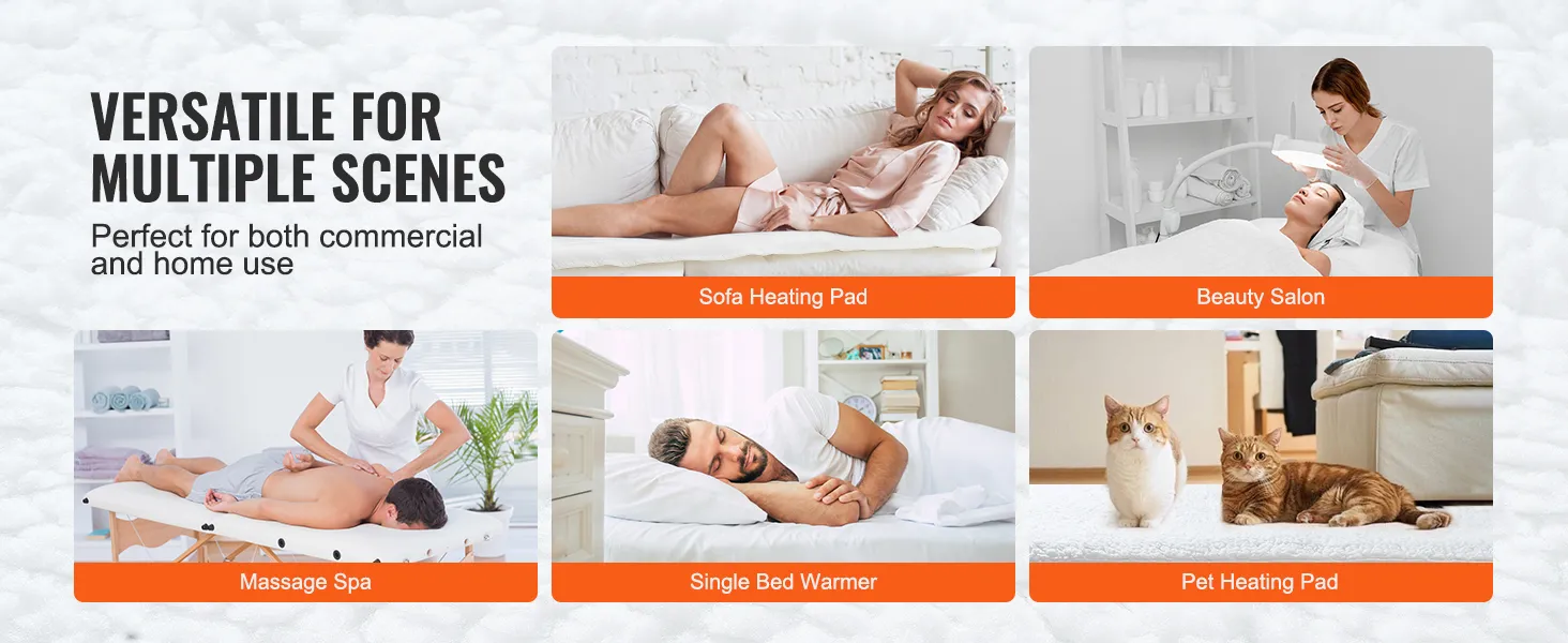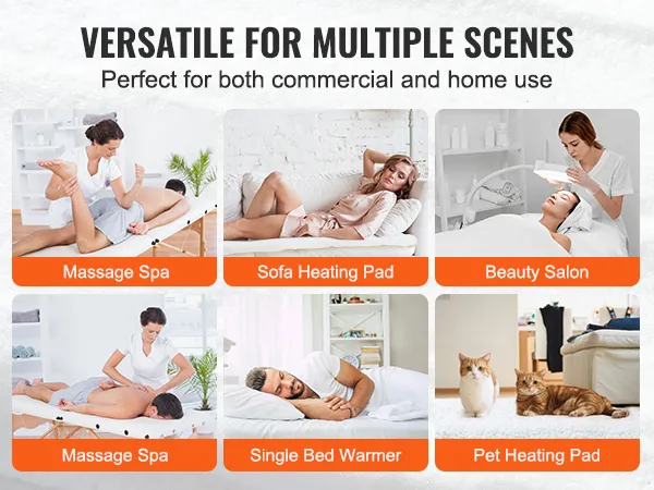 The VEVOR massage heating pad is not limited to massage studios; it's also perfect for beauty salons, home use, and can even serve as a heating pad for sofas, pets, or single beds. Enjoy long-lasting warmth and comfort, elevate clients' massage experience!