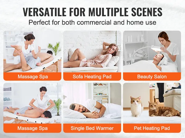 The VEVOR massage heating pad is not limited to massage studios; it's also perfect for beauty salons, home use, and can even serve as a heating pad for sofas, pets, or single beds. Enjoy long-lasting warmth and comfort, elevate clients' massage experience!