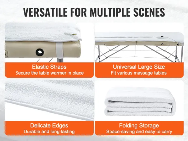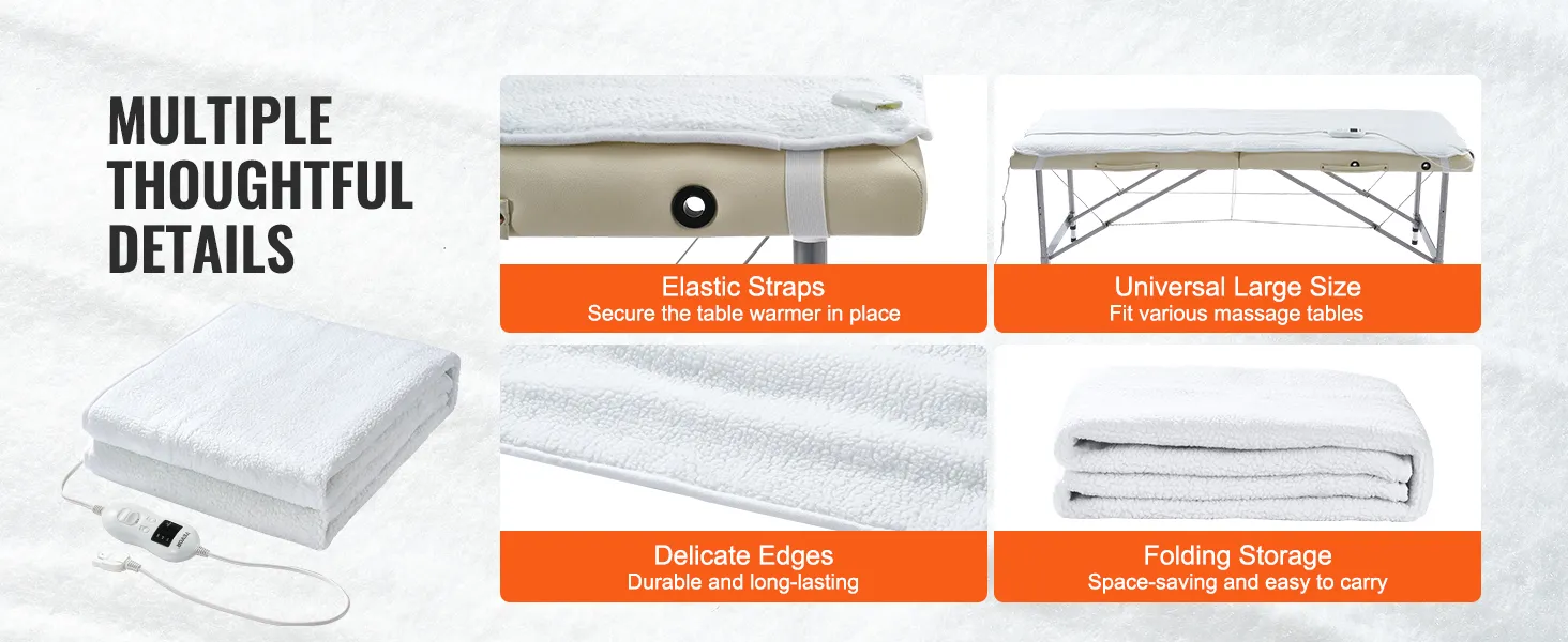 Crafted for Convenience: Our heated spa table pad has various thoughtful design: elastic straps keep it securely in place during use, and its large size fits different massage tables. The strong edge stitching makes it more durable and stylish, while the foldable design allows for easy storage without taking up much space.