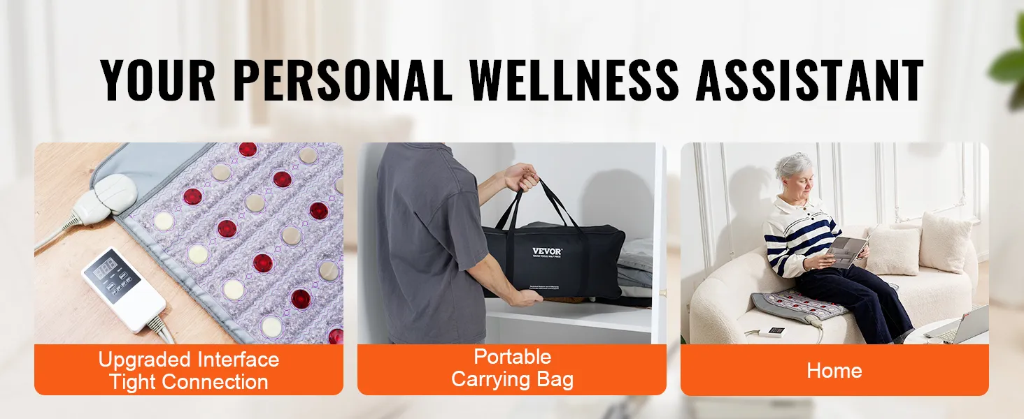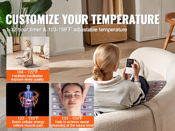 Gebruiksvriendelijke bedieningselementen: Pas uw verwarmingservaring aan met onze gebruiksvriendelijke bedieningselementen. Stel de temperatuur in tussen 39°C en 70°C (103 en 159°F) en pas de timer aan van 0 tot 720 minuten, afhankelijk van uw voorkeur. Dankzij de geheugenfunctie blijven uw laatste instellingen behouden, zodat u het apparaat altijd veilig en gemakkelijk kunt gebruiken.
